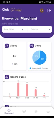 Cette application est dédiée aux commerçants affiliés à club privilèges, elle permet au commerçant d'avoir un dashboard regroupant tous les KPI's nécessaire pour le suivi de son activité.