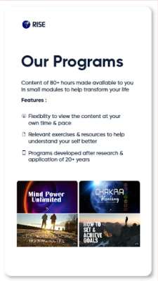 Welcome to RISE App - the ultimate resource for achieving success and happiness. Our app offers a wealth of knowledge and tools to help you on your journey to personal growth and self-discovery.