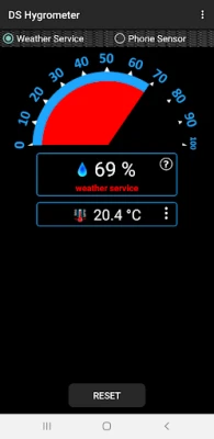 Few devices are equipped with a humidity sensor, but if your device has one, you will have the option to get the humidity directly from your Droid's hardware or from a weather service. If your device does not have the sensor, don't fret... We are able to take your location, determined by your device's GPS and with a little internet help, the app will show the humidity outdoors at your location.